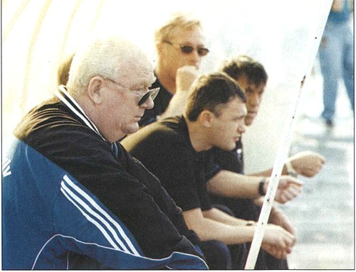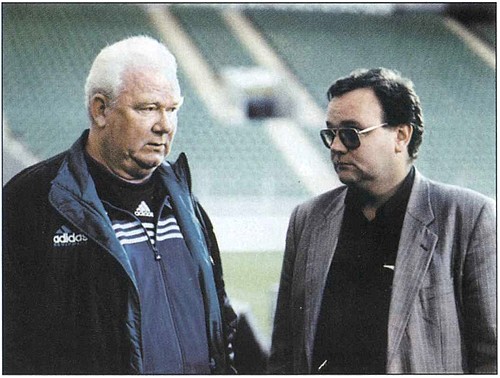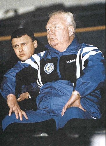 В. Лобановский и И. Суркис на стадионе «Динамо» (которому впоследствии будет присвоено имя Лобановского)