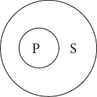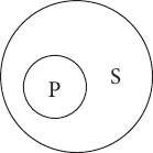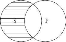 Круг, обозначающий предикат, является полным, а круг, соответствующий субъекту, – неполным (круг предиката как бы вырезает из него какую-то часть). Таким образом, в данном суждении субъект нераспределен, а предикат распределен (S—, P+).