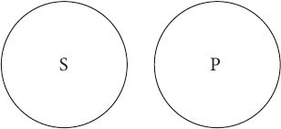 5. В суждениях вида Е субъект и предикат находятся только в отношении несовместимости. Поэтому в этих суждениях они всегда оба распределены (S+, P+), например: Все киты (S) не являются рыбами (P).