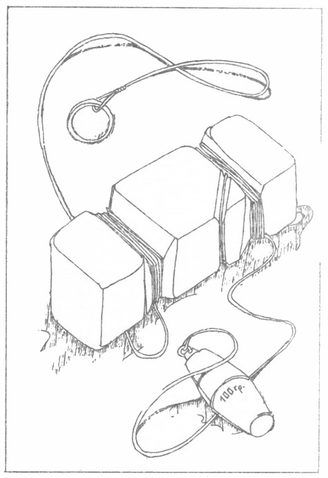 С целью облегчения своей участи опытные рыбаки применяют следующий тактический прием. Заякорившись одним грузом неподалеку от тони, рыболов заряжает всю партию кружков, затем оставшийся свободный конец якорного фала наматывает на пенопластовый буек размером 100 x100 x 250 мм и, освободив