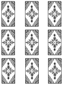 Расклад повторить еще по разу с рядами по четыре карты, затем по три карты и наконец с рядами по две карты.