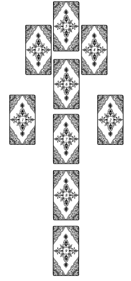 Карты, образующие круг (3, 5, 4, 6), рассказывают о причинах текущего состояния дел, о том, почему это произошло. Карты, образующие крест (1, 6, 2, 7, 8, 9), говорят о конкретных проявлениях процесса, о том, что необходимо сделать и чего можно ожидать в итоге.