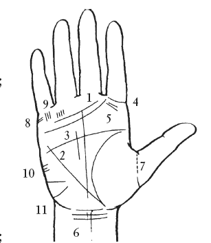 Как известно, на ладони, помимо основных линий, есть множество второстепенных, которые также важны для гадания по руке. Следует отметить, что, если основные линии являются обязательными, то многих второстепенных линий на ладони может не быть. У каждого человека индивидуальное количество второстепенных линий. На рисунке 27 представлены все второстепенные линии: