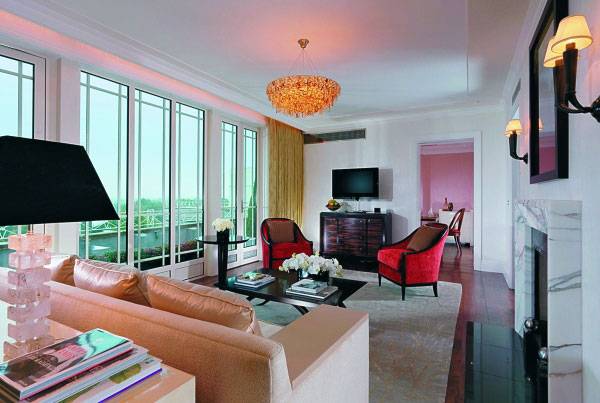 Дизайнер Александра Шампалимо, работавшая над тремя новыми сьютами, оформляя номер Audley, уделила внимание современной энергичной отделке в духе хай-тек, то есть никель, темное дерево, шелк на стенах, акценты в виде жемчуга. Иными словами, не консервативно, но торжественно. Основные цвета, задействованные в интерьере, – цвет бирюзы и невыносимо-желтой тыквы.