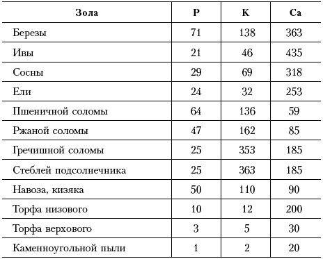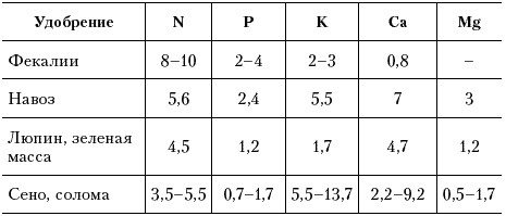 Содержание питательных элементов в различных органических удобрениях, г/кг