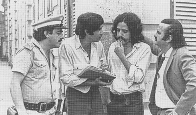 Пауло на съемках порнофильма «Рохли». Слева от него актер Анри Фонтоура, справа — режиссер Фелипе Кароне