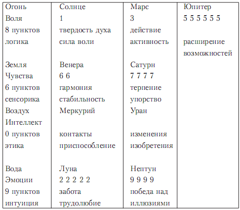 Теперь занесите цифры имени в итоговую таблицу 2 и с удовлетворением заметьте, что гармония и порядок восстановлены.