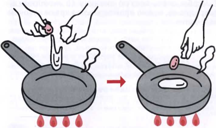 При размешивании яиц часто используется небольшая посуда. После того как яйца выливаются, на дне остается прилипший желток, и вам жаль выбрасывать его. Есть маленькая хитрость, которая поможет вам. Нужную посуду, перед тем как разбивать в нее яйца, следует окунуть в воду. Капли воды не дадут желтку прилипнуть к стенкам посуды, и вы выльете яйцо полностью.