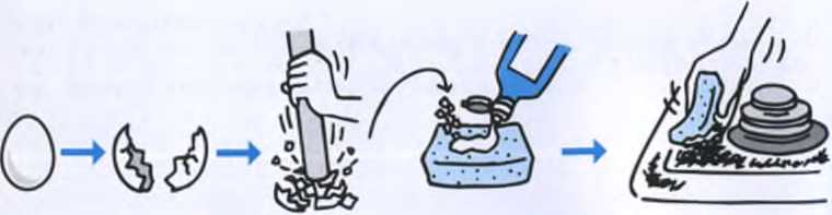 Газовую плиту, сильно запачканную маслом, можно очистить, протерев яичной скорлупой. Трудно счищаемый нагар на сковородке также удаляется яичной скорлупой. Сделает это размельченная яичная скорлупа, смешанная с чистящим порошком, с помощью щетки. Такую грязь нельзя очистить только одним чистящим порошком.