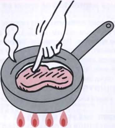 4. Готовность стейка средней прожаренности проверяется пальцем
