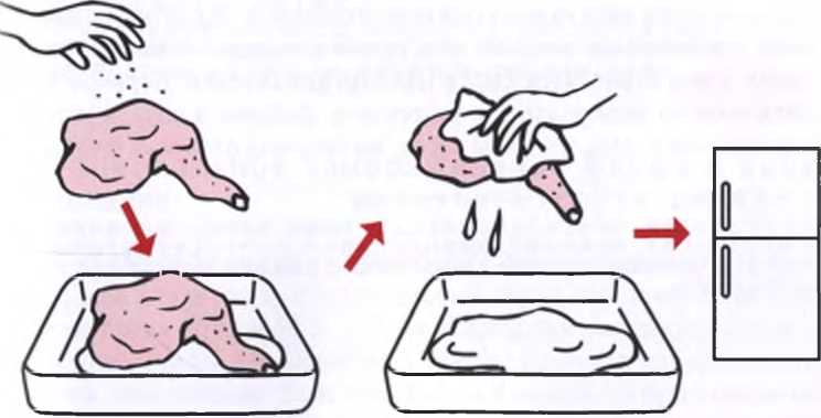 Курятина водянистая, поэтому перед замораживанием следует посыпать ее солью и вытереть выступившую влагу. Исчезнет водянистость мяса, и оно будет вкуснее. Кроме того, после такой обработки курятина будет храниться дольше, чем та, которую вы сразу положили в морозильник.