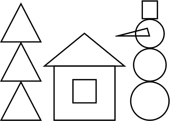 Сначала покажите ребенку, как накладывать геометрические фигуры на их изображения на листе бумаги. Затем покажите, как тем же способом наложения из геометрических фигур можно составить картинки: «Дом и забор», «Машина», «Неваляшка».