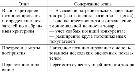 Этапы позиционирования товара