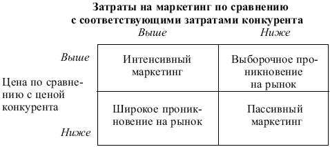 Приняв решение о позиционировании, предприятие может определиться с методом маркетинга для упрочения собственных позиций на рынке. С этой целью следует использовать матрицу, представленную на рис. 3.10.