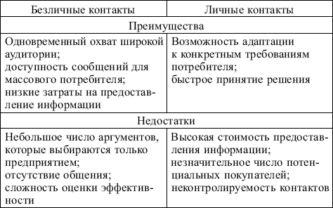 Решения по коммуникациям связаны с налаживанием личных или безличных контактов с потенциальными потребителями товаров предприятия (табл. 5.3).