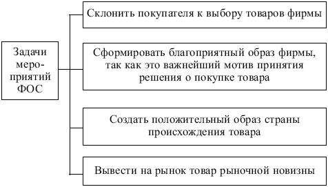 Цель мероприятий ФОС – преодоление «барьера недоверия» покупателя к незнакомому товару, тем более если его предлагает незнакомая фирма, и последующее формирование у него положительного представления о товаре. Когда из неосведомленного покупатель становится осведомленным, а затем действующим, приобретающим товар, возникает имидж товара.