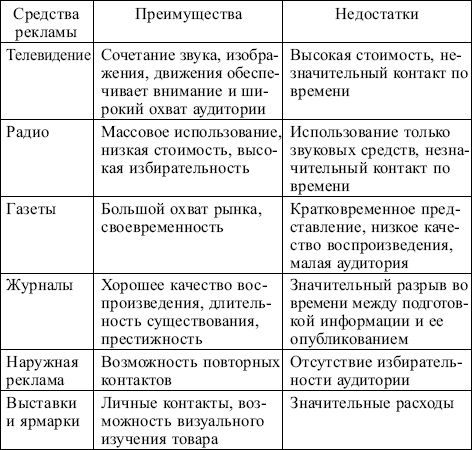Сегодня не существует наилучшего средства рекламы. Преимущества и недостатки основных средств рекламы представлены в табл. 5.7.