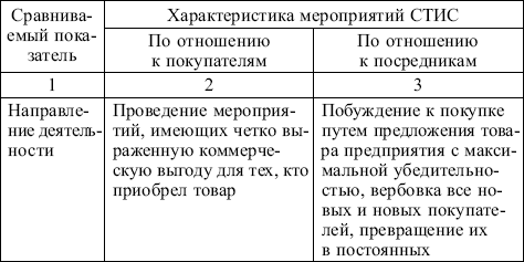 Сравнительная характеристика мероприятий СТИС по отношению к покупателям и торговым посредникам