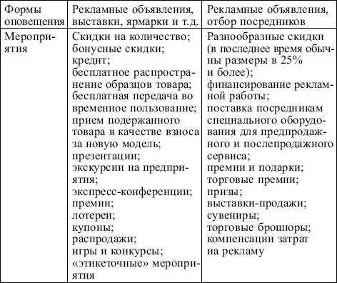 Мероприятия СТИС проводятся по отношению к покупателям и торговым посредникам (табл. 5.9).