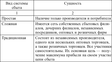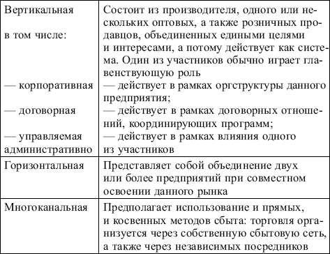 В практике маркетинга различают различные системы сбыта (табл. 6.2).
