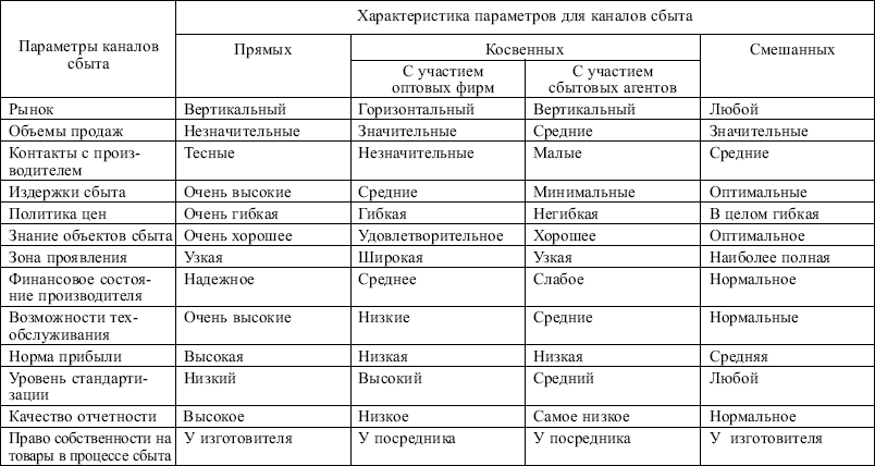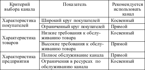 При выборе канала распределения руководствуются критериями, указанными в табл. 6.5.