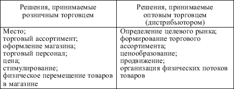 Маркетинговые решения, принимаемые розничными и оптовыми торговцами, приведены в табл. 6.4.