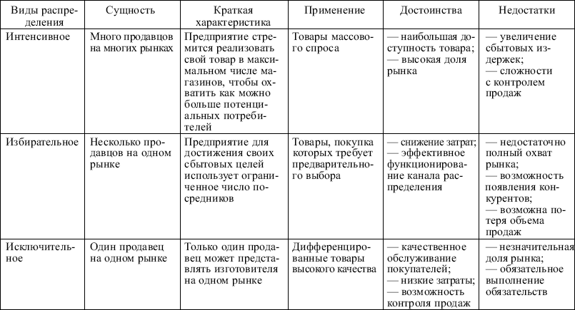 По уровню охвата рынка выделяют три вида распределения (табл. 6.6).