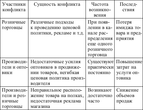 В сбытовой сети могут возникать конфликты. Их причины достаточно разнообразны (табл. 6.7).