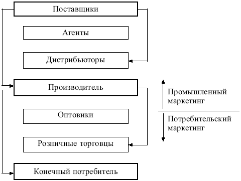 Подводя итоги сказанному, отметим структуру типичного канала товародвижения и сбыта (рис. 6.7).