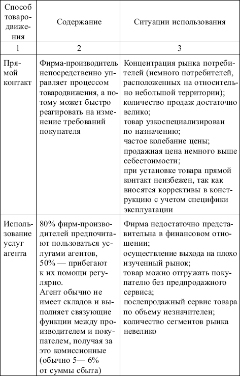 При организации товародвижения используют различные способы, характеристика которых дана в табл. 6.9.