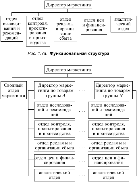 Сравнительный анализ различных организационных структур маркетинга представлен в табл. 1.8.