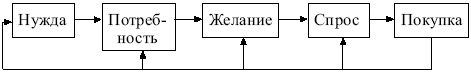 Потребитель должен осознать существующую потребность в товаре и осуществить его приобретение. Процесс конкретизации потребности представлен на рис. 2.7.