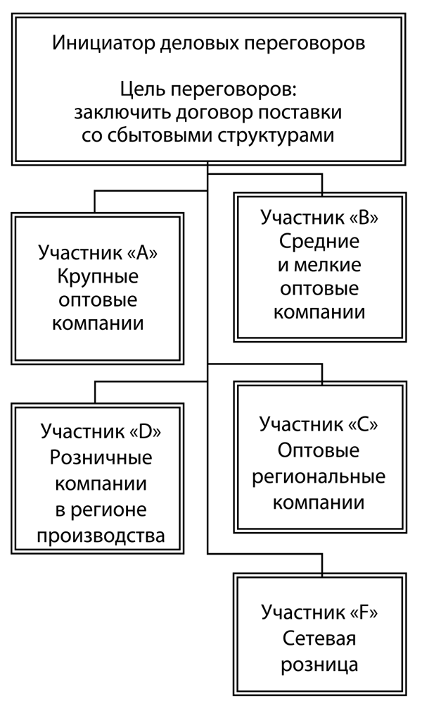 Если каждую категорию участников можно рассматривать как потенциального партнера по деловым переговорам, то целесообразно внутри категории провести отбор. В результате свое предложение вы сможете сделать от двух (категория крупный «оптовик») до сотни («местная розница») участникам рынка. Очевидно, что предложения внутри категории и, тем более, в разных категориях будут отличаться друг от друга.