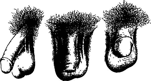 Рис. 8 Варианты мужских гениталий (в середине изображен нециркумцизированный