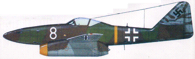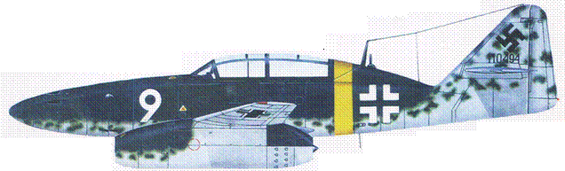 Me 262A-2a(B3+GL), I/KG(J) 54, пилот — оберлейтенант Гюнтер Кахлер