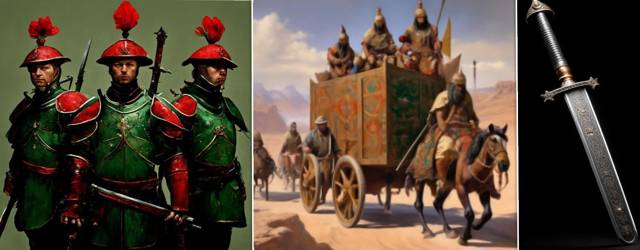 Мы поехали территорию кочевников, как раскалённый нож масло. Отряды татар мы расстреливали походя из арбалетов и наших с Кицуне бластеров. И рано или поздно, наш путь пересекся с зелёной меткой на карте. Арба навьюченная огромным сундуком, была застигнута нами в момент перепряжки волов на лошадей. Зачистив эскорт, синтеты оцепили повозку, а я как всегда немного волнуюсь, положил ладонь на знакомо вспыхнувший силуэт. Сундук исчез в беззвучной вспышке и в воздухе повис знакомый меч, который растаял в моей руке, даже без контрольной рубки.