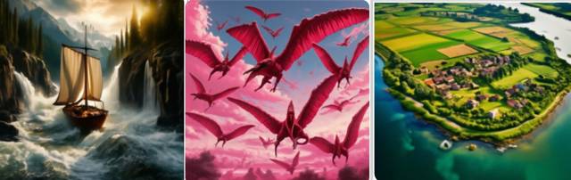 Ядовито розовое небо покрытое темно-зелеными облаками, вулканы спорадически снопирующие огнем на горизонте, змеистые разноцветные молнии в зените, отдающиеся далекими громами и как изюминка на торте… реющие в выси красные птеродактили, радостно накинувшиеся на пиратский корабль и порвавшие его в клочки.