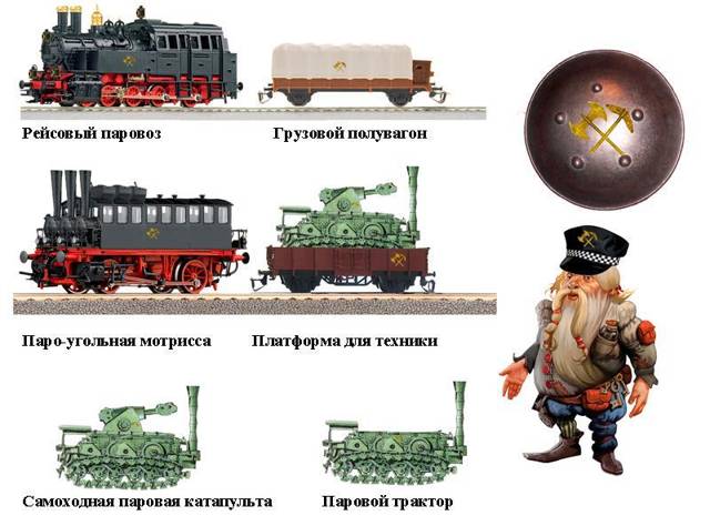 железнодорожные гномы вельми меня порадовали. Пока я воевал и приращивал территории, они создали «Большое княжеское стимпанк метро» (курсив Мазура). Официально моя железнодорожная подземная система называлась «Княжеские дороги» и развилась уж на много сотен километров. На новых уровнях подземелий Замка нашлись и «Кроты» для устройства тоннелей, и модули сбора строительной техники, включая путеукладчики, и модули автоматических металлургических предприятий, которые могли бесконечно штамповать рельсы и подвижной состав. И самое важное, большой запас модулей мобильных порталов. После того, как я ввел для гномов-путейцев звания и униформу со всеми возможными и невозможными шевронами, кокардами, погонами и эмблемами (которые мы разрабатывали вместе с Мазуром), все хирды планеты ринулись оформлять свой вассалитет под моей рукой, так что с персоналом своего железнодорожного ВПК у меня проблем не было. Теперь с расширением территории княжества железнодорожное строительство приняло схему покраски Бруклинского моста, который, как известно красят круглый год уже много лет. После постройки главной линии между Замком