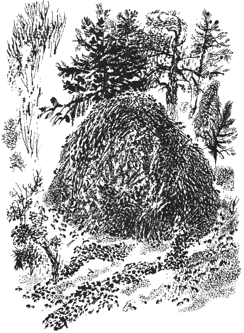 Вперёд и назад торопятся муравьи: вперёд налегке — назад с добычей. Я посмотрел назад и увидел большой муравейник. Там у самой муравьиной тропы птичка — лесной конёк. Она нагибается и хватает Муравьёв одного за другим.