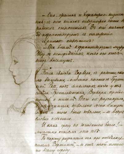 Федор Сологуб. Зарисовки персонажей романа «Мелкий бес». Беловой автограф. Чернила. Не позднее 1902 г. РНБ.