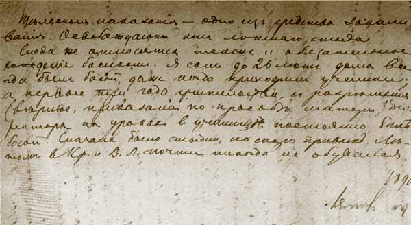 Федор Сологуб. Фрагмент статьи «О телесных наказаниях». Черновой автограф. Начало 1890-х годов. ИРЛИ.