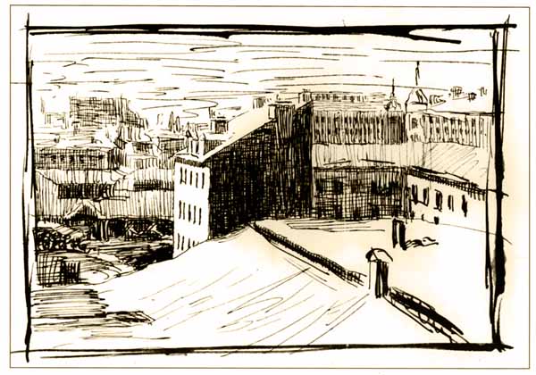 М. В. Добужинский. Вид на Матятин переулок, где в детстве жил Федор Сологуб. 1900-е годы. ИРЛИ.