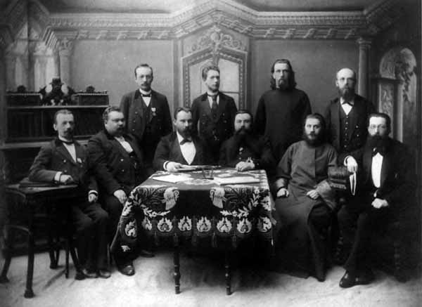 Федор Сологуб в группе преподавателей Андреевского городского мужского четырехклассного училища. Музей ИРЛИ.