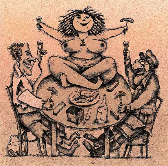 Антонина Алексеевна высказала желание принять участие в попойке, но обязательно в голом виде, да еще вдобавок сидя на столе на котором предполагалось разложить закуску к водке.