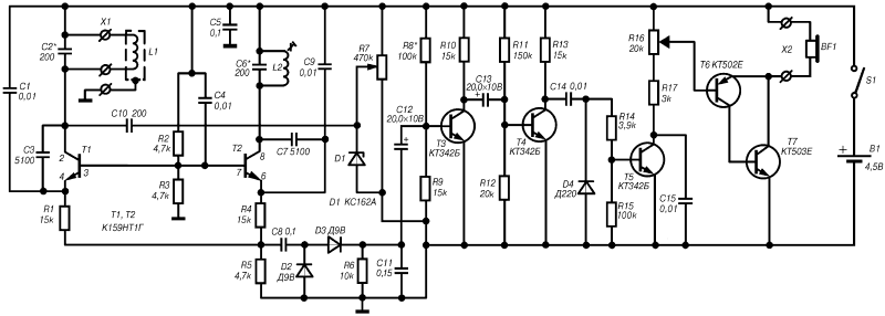 Рис. 2.10. Принципиальная схема металлоискателя с повышенной чувствительностью