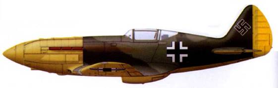 МиГ-1 «желтая 5» из 31-го ИАП, захваченный гитлеровцами в первые дни войны на аэродроме в Ков но. Металлические части планера покрыты зеленой краской более светлого оттенка. Звезды имеются на нижней и верхней стороне крыльев.