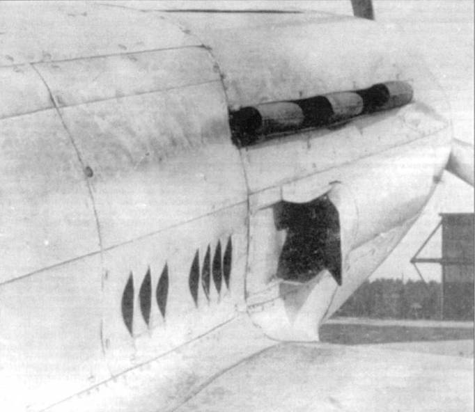 Передняя часть фюзеляжа второго прототипа. Видны выхлопные патрубки и один из двух маслорадиаторов.