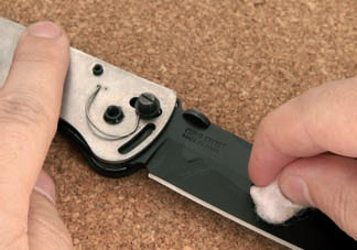 Для эффективного применения Militec-1 необходимо очистить поверхность обрабатываемой детали и нагреть ее до температуры 65 °C. Сделать это проще всего, используя бытовой или паяльный фен. Подобный нагрев никоим образом не может повредить закалке клинка, так как даже для низкотемпературного отпуска необходимо нагреть деталь минимум до 150–200 °C. После нанесения Militec-1 нож нужно несколько раз сложить, а затем насухо вытереть обработанные поверхности. Для наилучшего результата можно повторить весь этот процесс 2–3 раза.