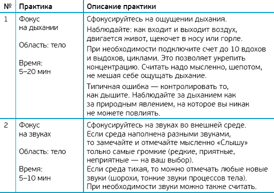 Безусловно, практик осознанности намного больше, чем уместилось в эту статью. Цель осознанности не в их коллекционировании, а в развитии способности быть в контакте с реальностью, в мире с собой и окружающими. Пробуйте эти, ищите новые, используйте наиболее подходящие для вас. Главное, не останавливайтесь после пары попыток со словами: «У меня не получается, это не для меня». Осознанность – навык, требующий времени, постоянного использования и внимания. Все получится.