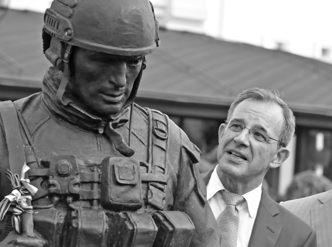 Французские депутаты с памятником «Вежливым людям» в Симферополе